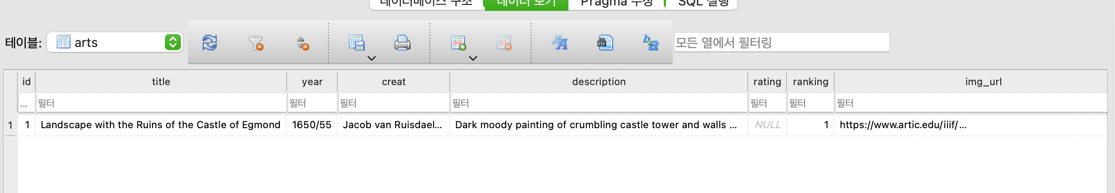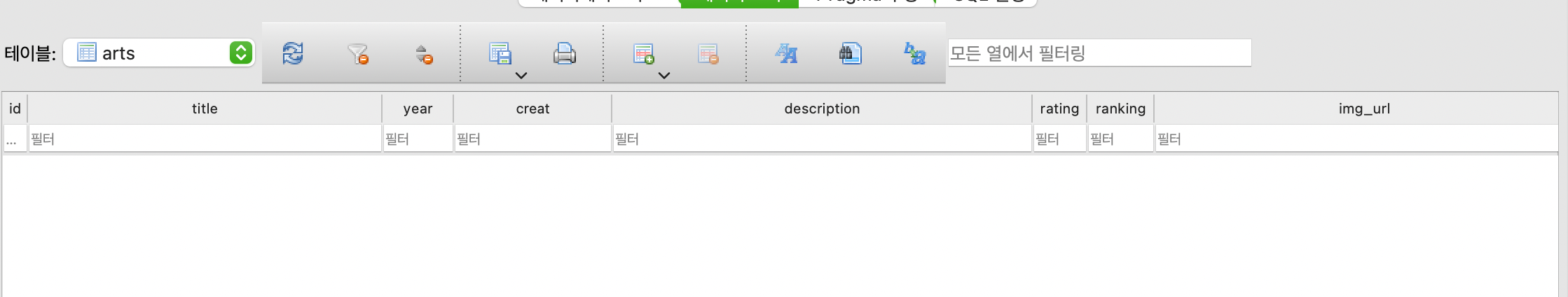 title , ranking , img_url 같은 항목들을 테이블의 열로 만들어 두었다.
